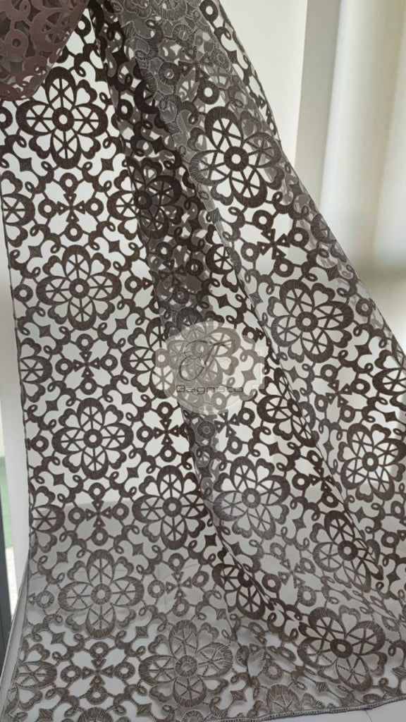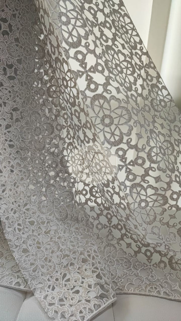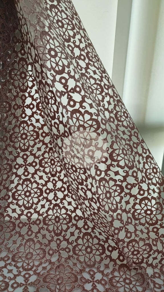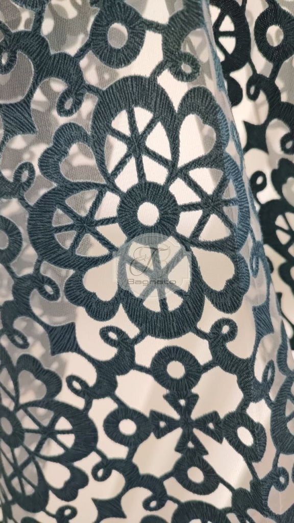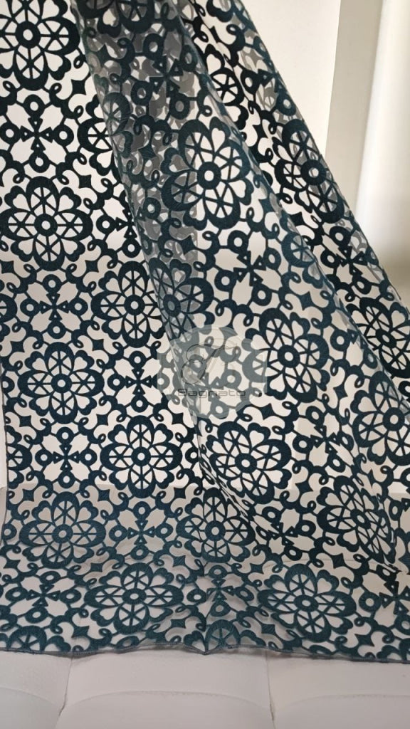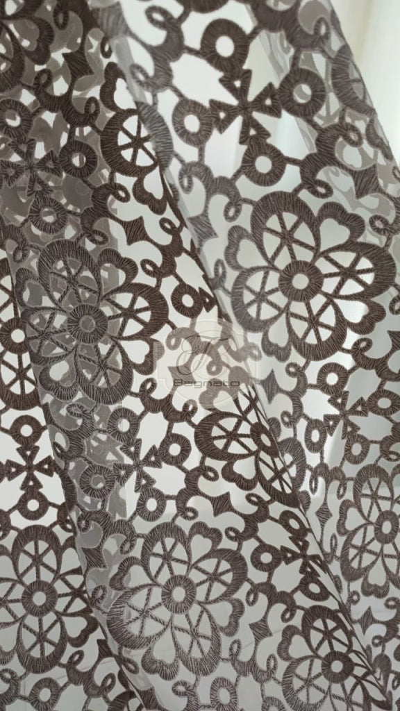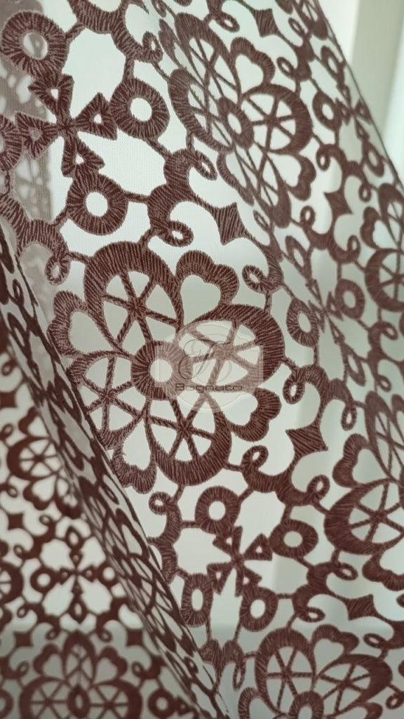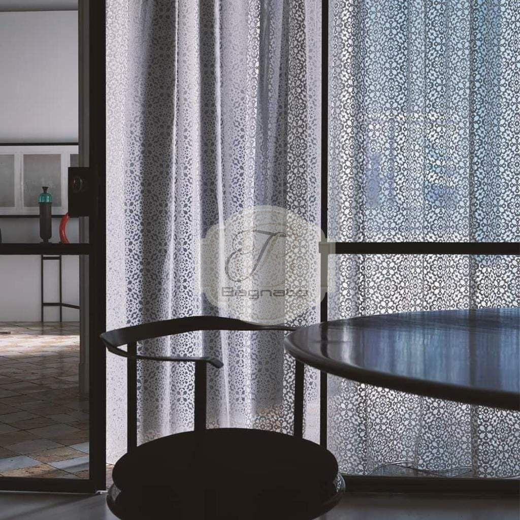 Tenda a metraggio devoré che richiama le trame del macramè, rivisitandolo.